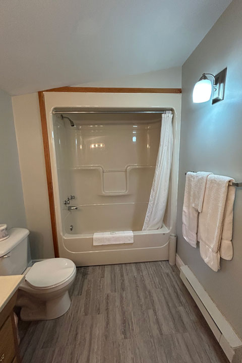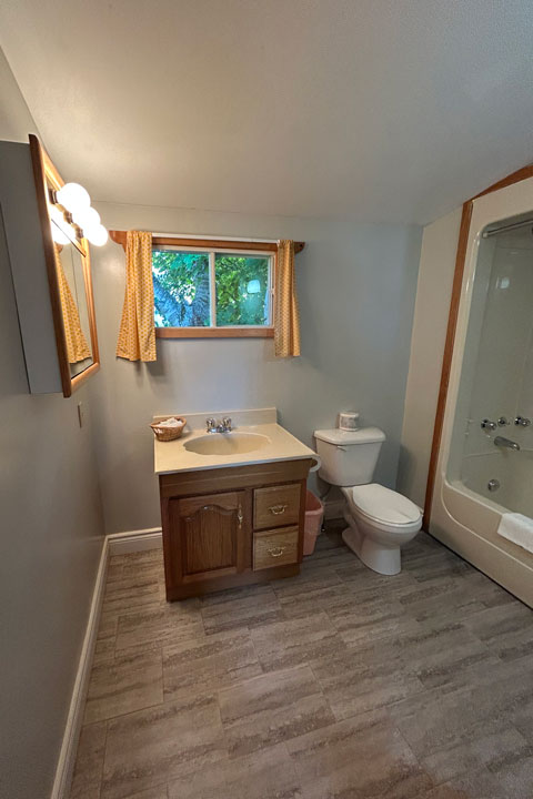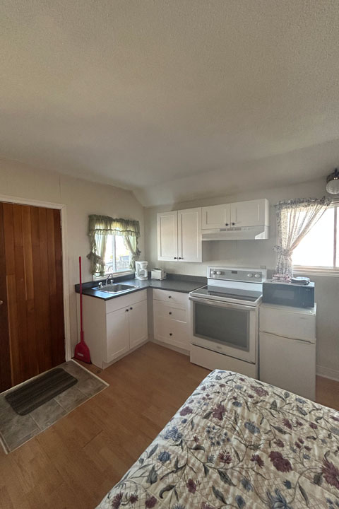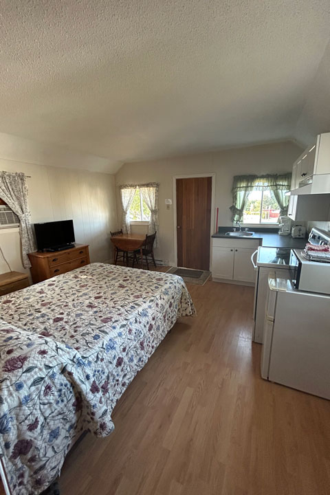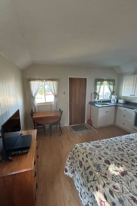 #116 ::: smaller bachelor cottage, queen bed, 4-pc bathroom, small “efficiency” kitchen, picnic table, propane BBQ.